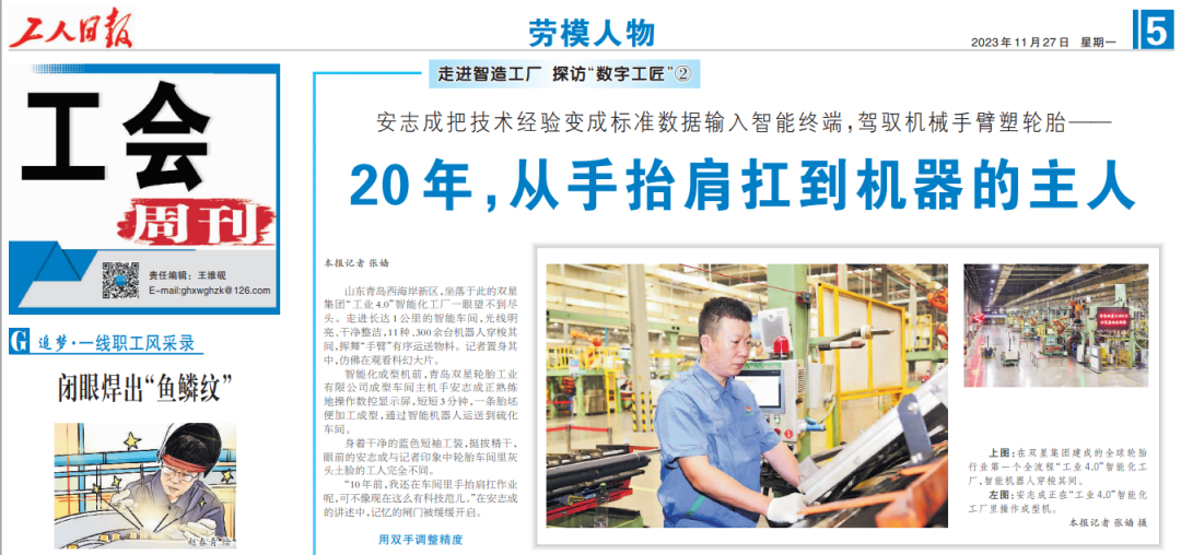 工人日?qǐng)?bào):走進(jìn)智造工廠,探訪雙星集團(tuán)“數(shù)字工匠”安志成