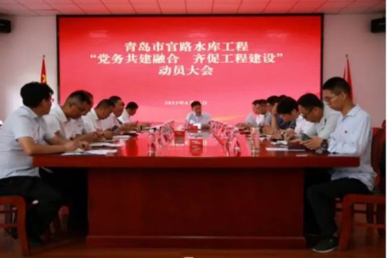 官路水庫公司黨支部與市水務局官路水庫工程現場管理組黨支部聯合開展官路水庫工程“黨務共建融合,齊促工程建設”黨建進工地啟動大會,青島市水務管理局黨組成員、副局長劉國會作動員講話。通過黨務共建進一步落實黨建項目化實施方案,推進黨建工作與業務深度融合,保障官路水庫工程如期高質量推進。